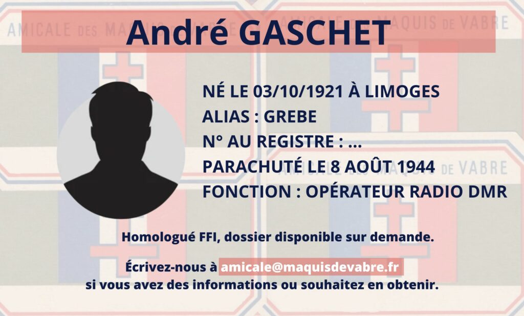 André Gaschet, alias Grebe, non inscrit au registre des Maquis de Vabre.