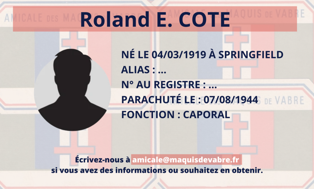 Roland Ernest Cote, non inscrit au registre des Maquis de Vabre.